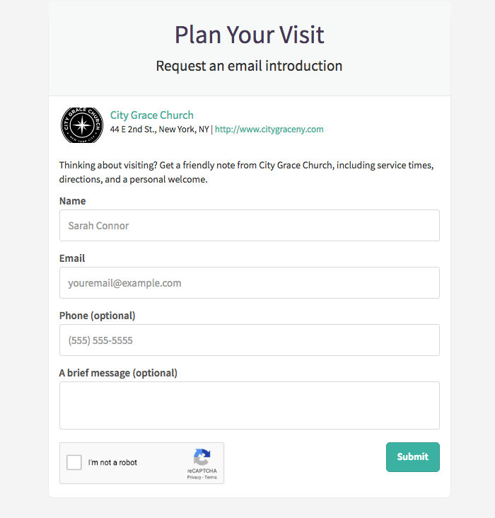 Have a website? That’s a great first step in connecting with those people. But, at FaithStreet, we know that most church websites are heavy on info and low on hospitality. That’s why we created the Plan Your Visit button.