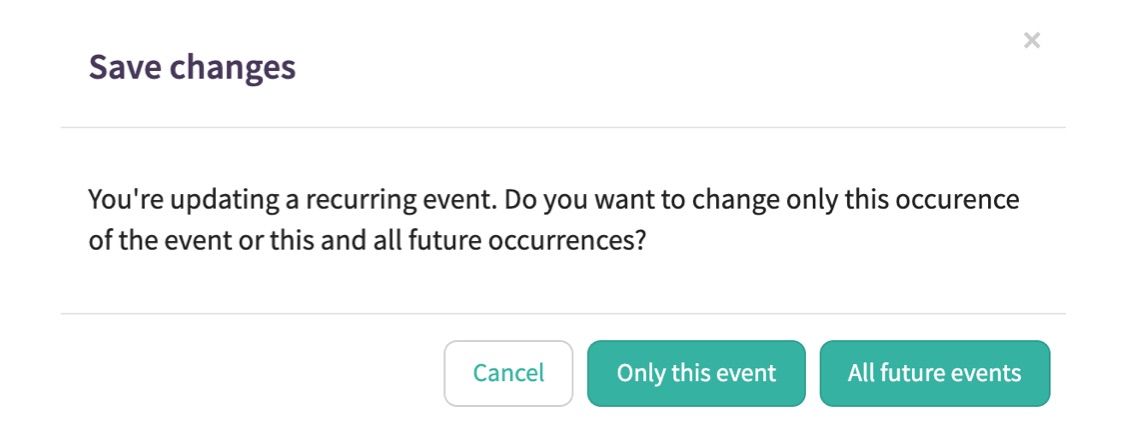 One challenge with recurring events is what to do when things change for just one date? With FaithStreet, you can make changes to or remove individual occurrences of an event, future occurrences, or all occurrences. This flexibility will save you time and keep your event calendar up to date.