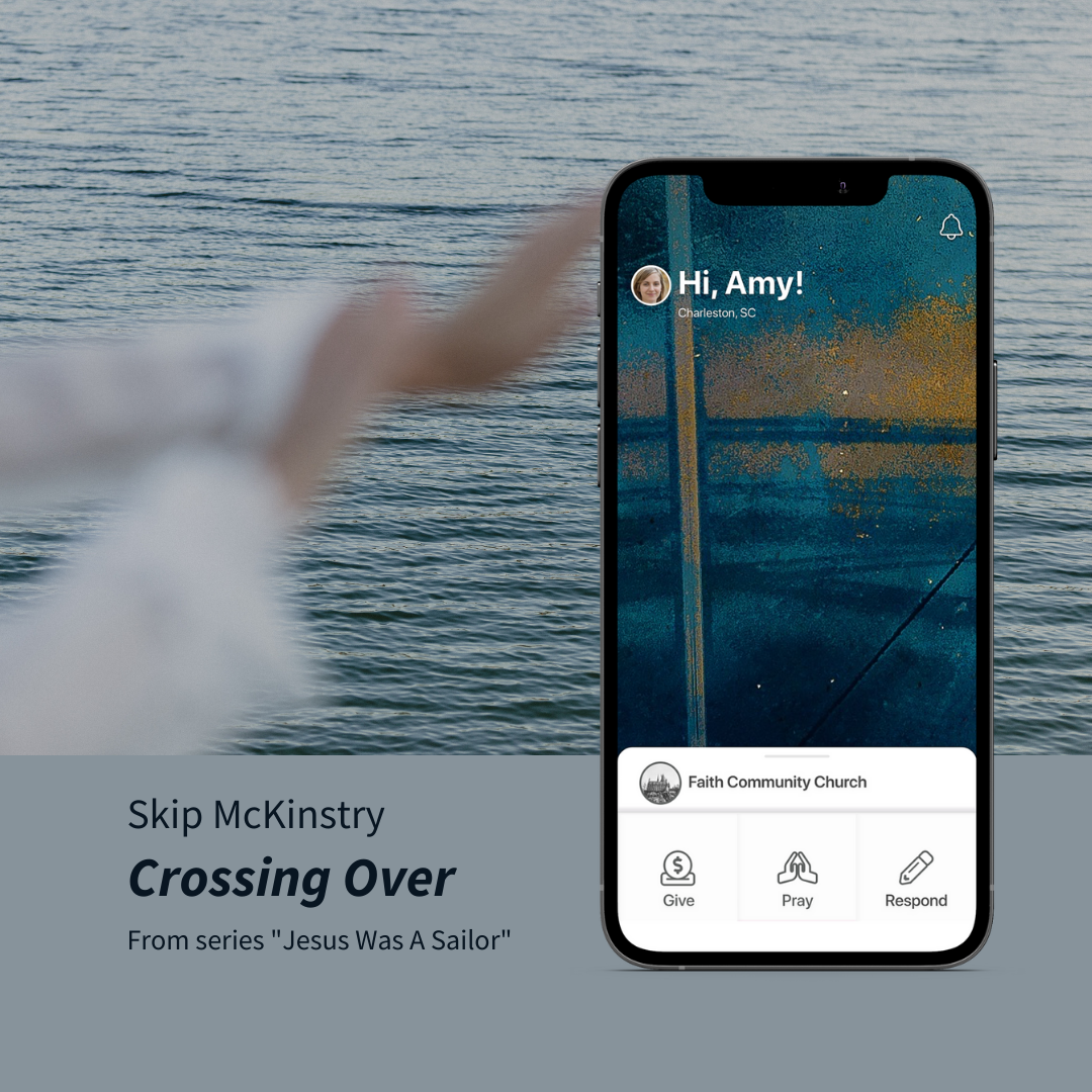 In three of the Gospel accounts, we have the story of Jesus getting into a boat, late in the day, with his disciples and setting sail to the other side. Tired, from a long day of teaching, Jesus went below and took a nap. As the sun began to go down, the calm seas turned turbulent and a storm came up that threatened to capsize the boat. The image, “Crossing Over,” comes from a series entitled “Jesus Was a Sailor.” In the image we have a sense of destination, and for those of faith we know that Jesus is on board. Isn’t it good to know that whatever storms come upon us, the Lord is with us?